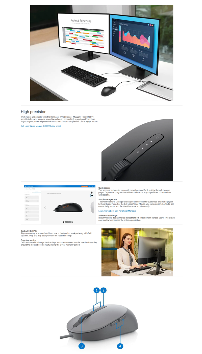 | Product Description | Dell MS3220 - mouse - USB 2.0 - black |