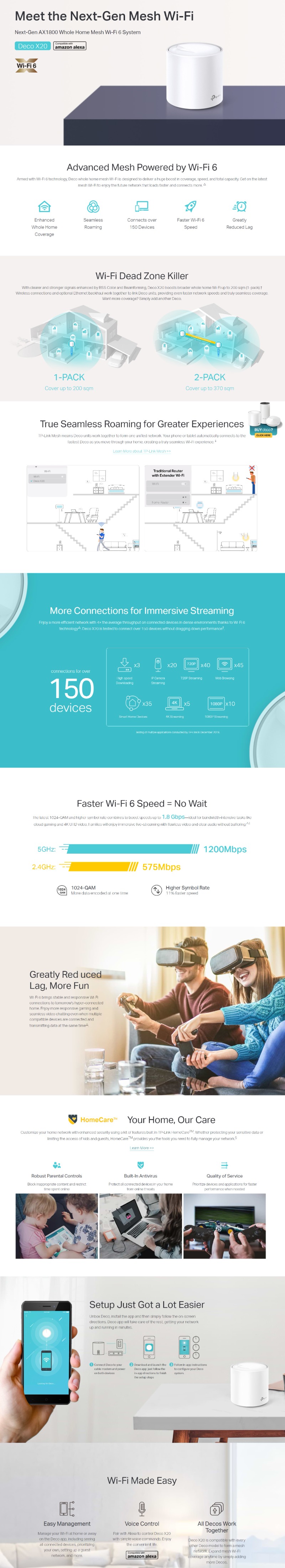 TP-Link AX1800 Whole Home Mesh Wi-Fi 6 System Up To 200 sqm Coverage, WIFI6 (Deco X20(1-pack))