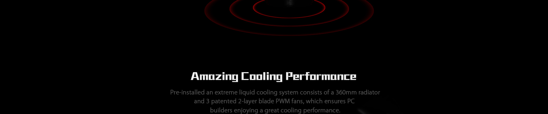 360mm radiator, 3 patented 2-layer blade PWM fans, reservior and helix are pre-installed;