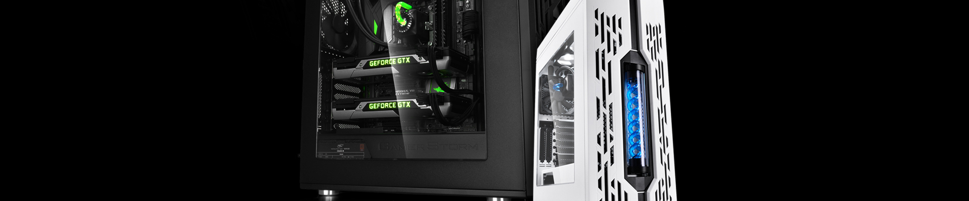 LED lights (white) on liquid cooling fans, water pump and front glass tube;