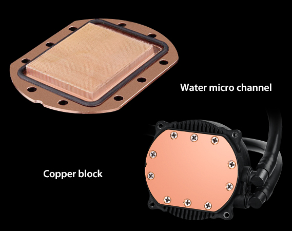 0.2 mm high-density water micro-channel & copper block for highly efficient thermal conductance