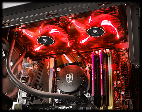 The new vision of Maelstrom retains some key factors of others from Maelstrom Series: long lifetime bearing, 0.2mm high-density water micro channel & copper block, aluminum radiator, bionic LED breathing light on pump and 120PWM fans, especially the assembled fan of Maelstrom 240T features RED LED. All of these features have enabled Maelstrom 240T to have high performance, low noise, long lifespan and an esthetic appearance.
