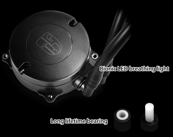 The newly imagined vision of Maelstrom retains essential key features of the Maelstrom Series: durable bearing, 0.2 mm high-density water micro-channel & copper block, aluminum radiator, bionic LED breathing light provided on a pump, 120 PWM-capable fans. The fan assembly of Maelstrom 240T also features red LED. These elements provide Maelstrom 240T with high performance, low noise, long service life, and awesome aesthetics.Durable zirconia ceramic bearing for 120,000-hour safe operations