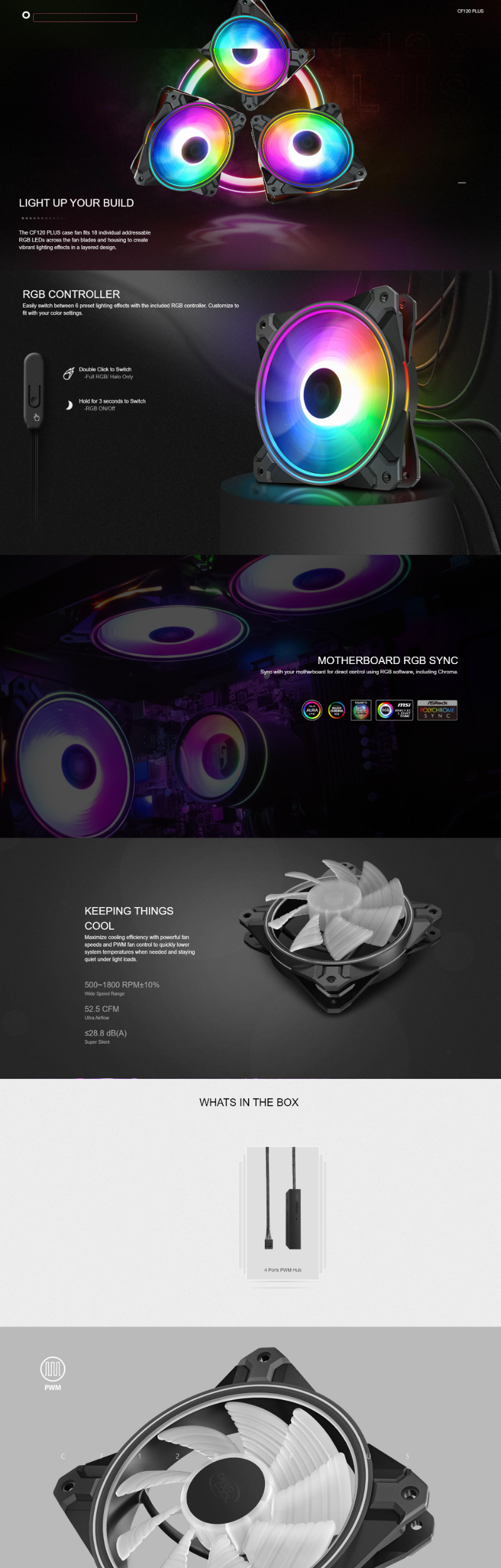 Deepcool CF 120 PLUS 3 in 1 Customisable Addressable RGB LED Lighting 3 PACK (DP-F12-AR-CF120P-3P)