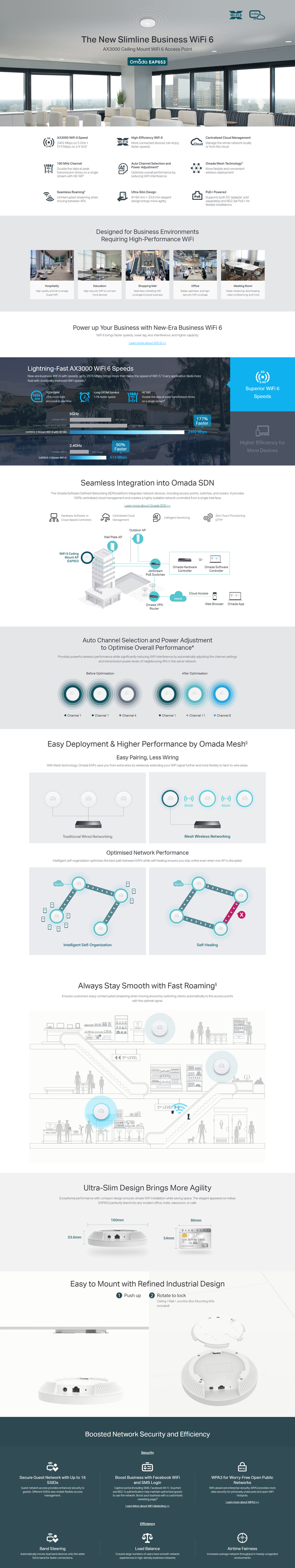 TP-LINK EAP653 AX3000 CEILING MOUNT WIFI 6 ACCESS POINT - CEILING MOUNT, 5Y