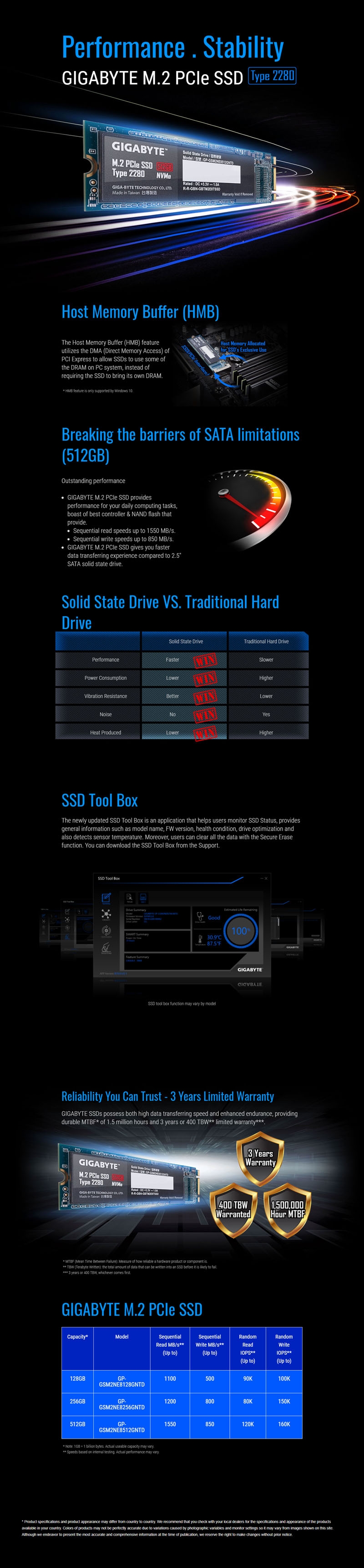 * TBW (Terabyte Written):Terabytes Written" is the total amount of data that can be written into an SSD before it is likely to fail.
