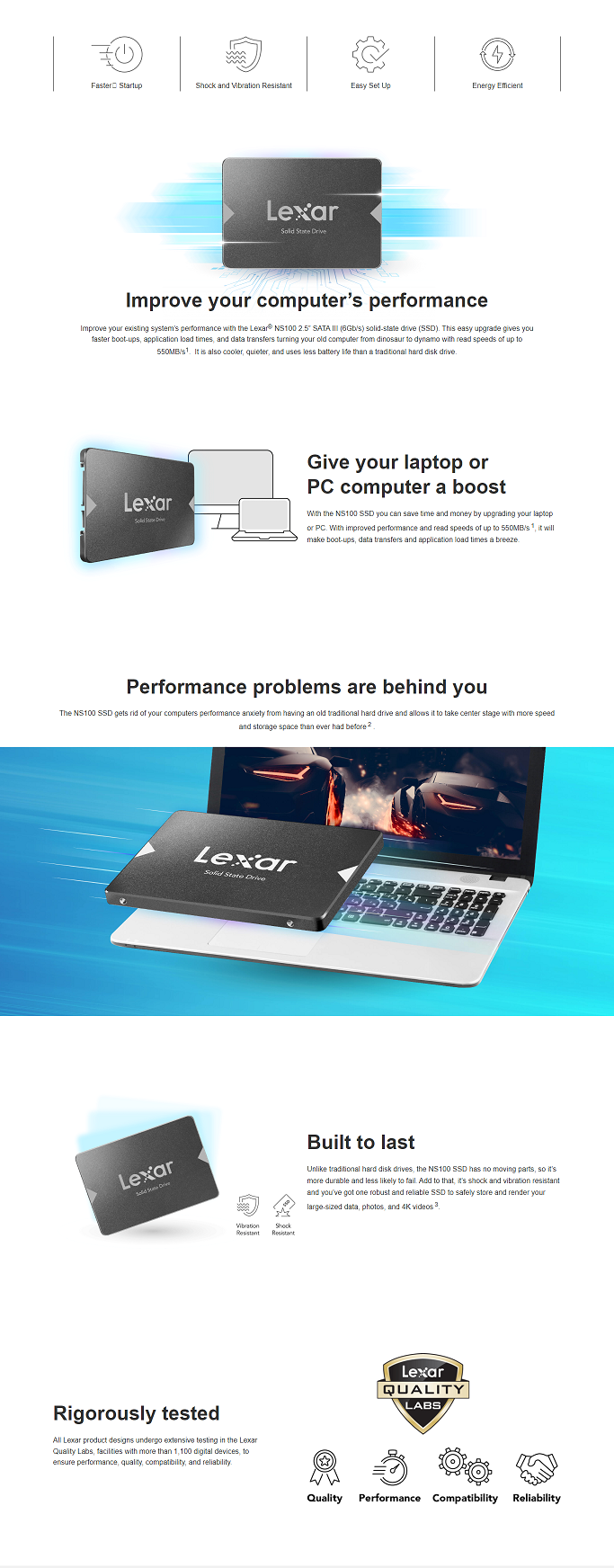 Lexar Ns100 512Gb 2.5" Sata Ssd - 550/450Mb/S Read Shock/Vibration Resistant Dash Software 3Yr Warr. Lns100-512Rbap