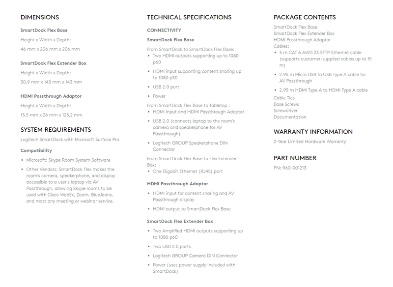 Logitech Smart Dock W/ Meet-Up Conference Camera Sp5 Iot With Flex 2Yr Wty Smartdock-Meetup-Flex