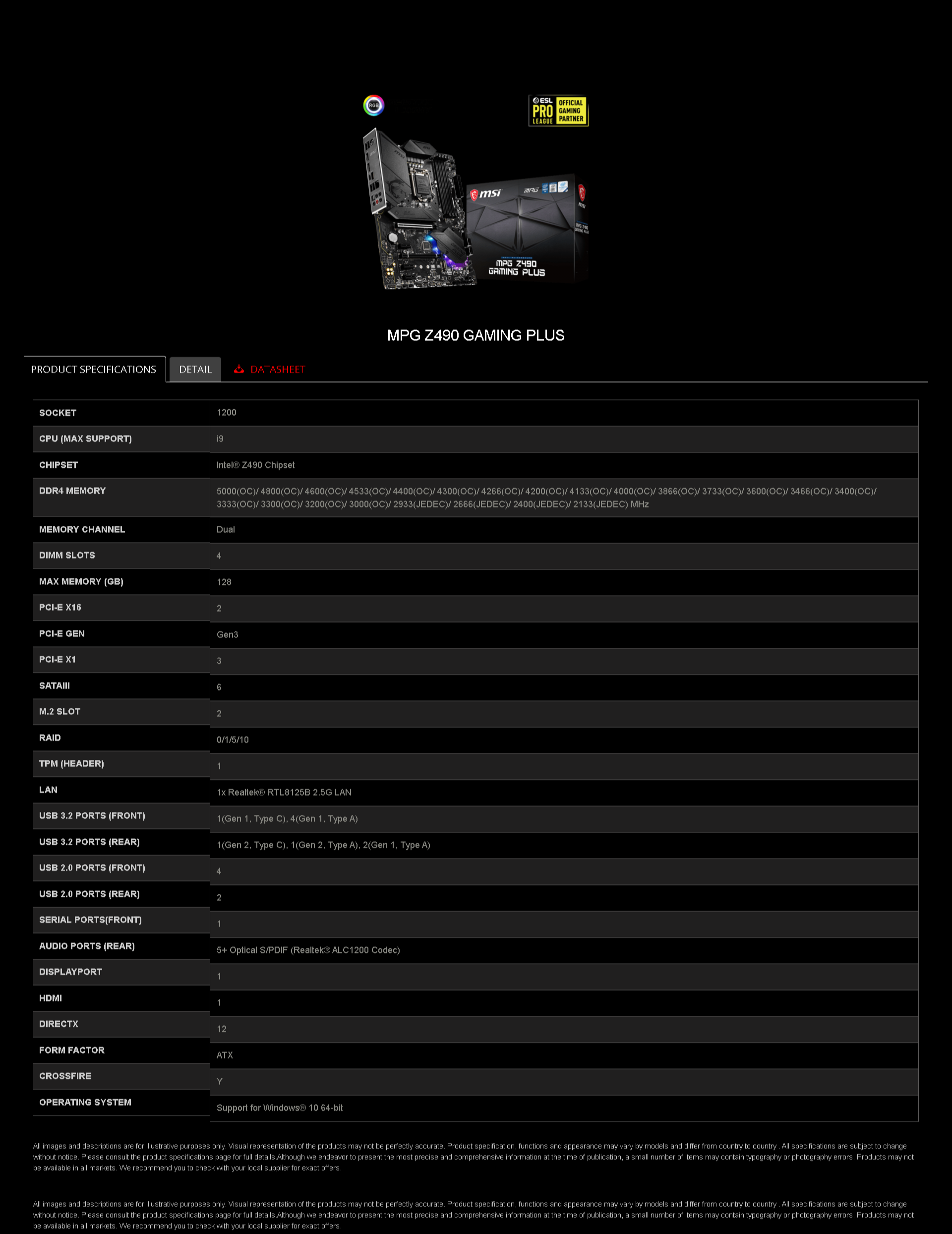 Msi MPG Z490 GAMING PLUS Mpg Z490 Gaming Plus