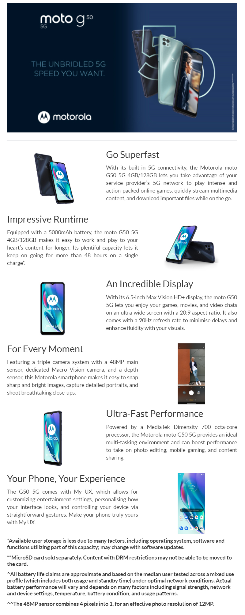 Motorola Moto G50 5G 128GB Storage, 4GB RAM, 90Hz Refresh, Up to 2 Days of Battery