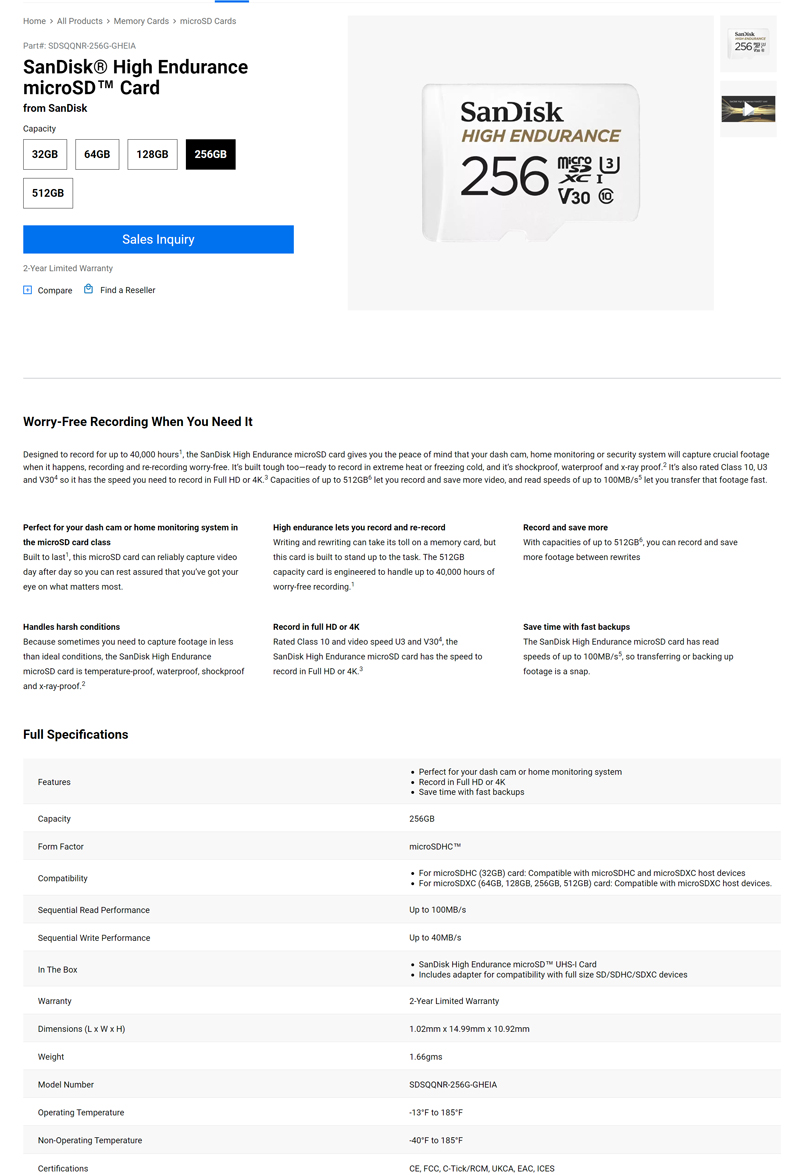 | Product Name | High Endurance microSD Card |