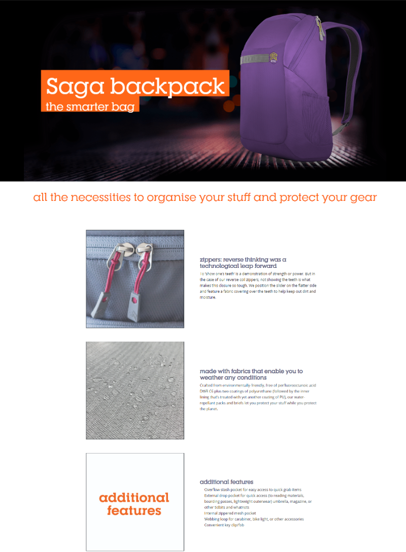 | Product Description | STM Saga notebook carrying backpack |