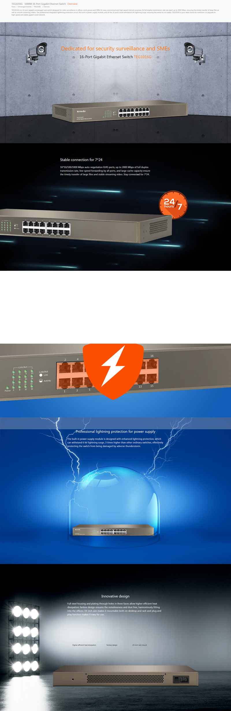 16*10/100/1000 Base-T Ethernet ports (Auto MDI/MDIX)