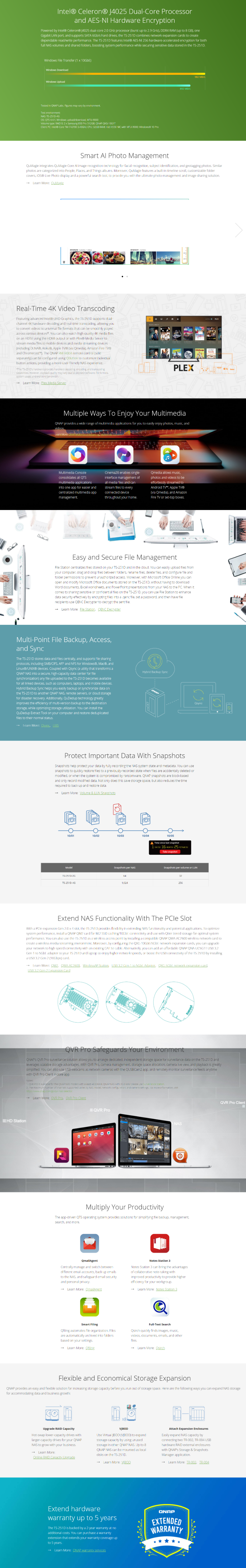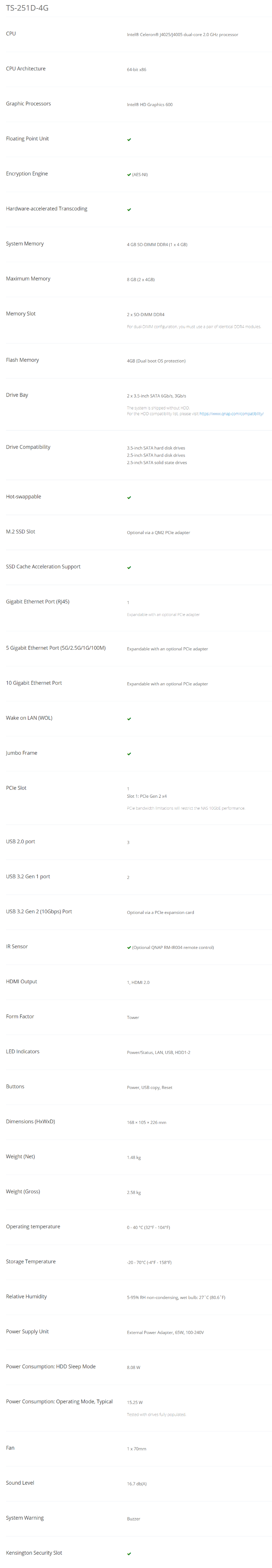 QNAP TS-251D-4G 2-Bay NAS, Intel Celeron J4005 2.0GHz Dual Core (up to 2.70GHz), 4GB DDR4 SODIMM RAM (1x4GB, 2 DIMM slots, max 8GB total) (TS-251D-4G)
