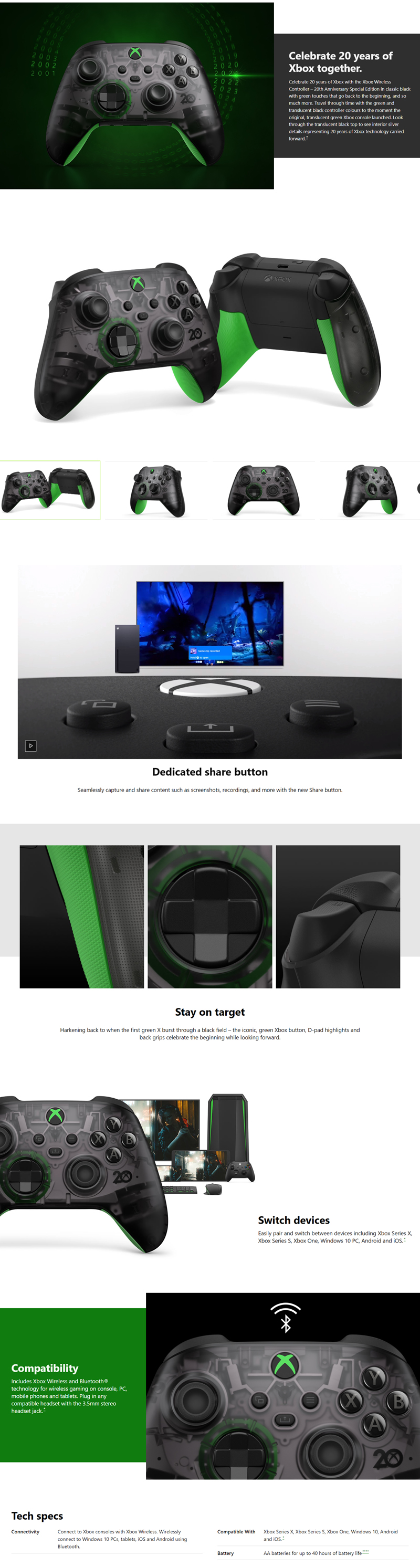 Xbox Wireless Controller 20th Anniversary Special Edition For Xbox, Windows 10, Android, iOS QAU-00046