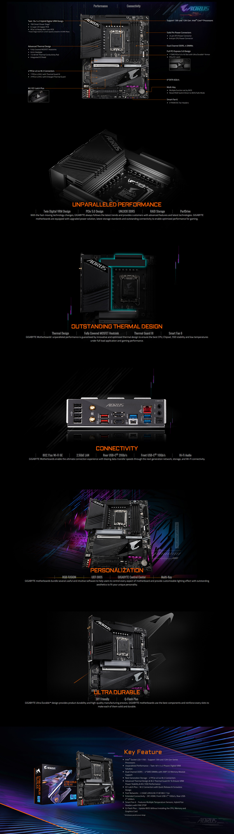 Gigabyte Z790 ATX Motherboard: 1700 Socket For Intel 13th/12th Gen. Processors4x DDR5, 6x SATA 6Gb/s, PCIe 5.0, 4x M.2 Gen4, USB 3.2, 2.5GbE LAN, Wi-Fi 6E + Bluetooth, Realtek 7.1 Audio, HDMI/DP Z790-AORUS-ELITE-AX-DDR5